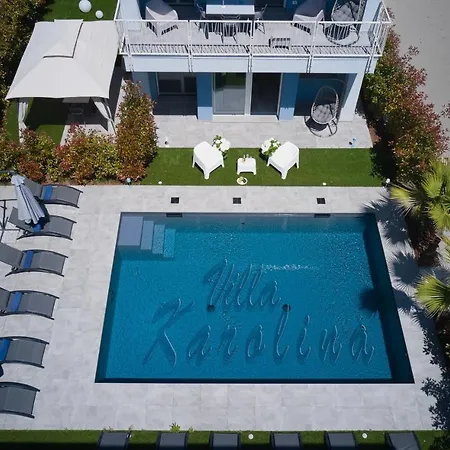 Villa Karolina heeft TV met satellietzenders en een flatscreen TV met satellietzenders en is ingericht met een bank en gemakken zoals airconditioning. Tot de veiligheidsvoorzieningen op de kamer behoren rookmelders. Er zijn veren kussens, donzen kussens en dikke donzen kussens verleend. De accommodatie heeft ook een bidet, een apart toilet en een douche. Daarnaast vindt u er een haardroger, toiletartikelen voor gasten en badlakens.